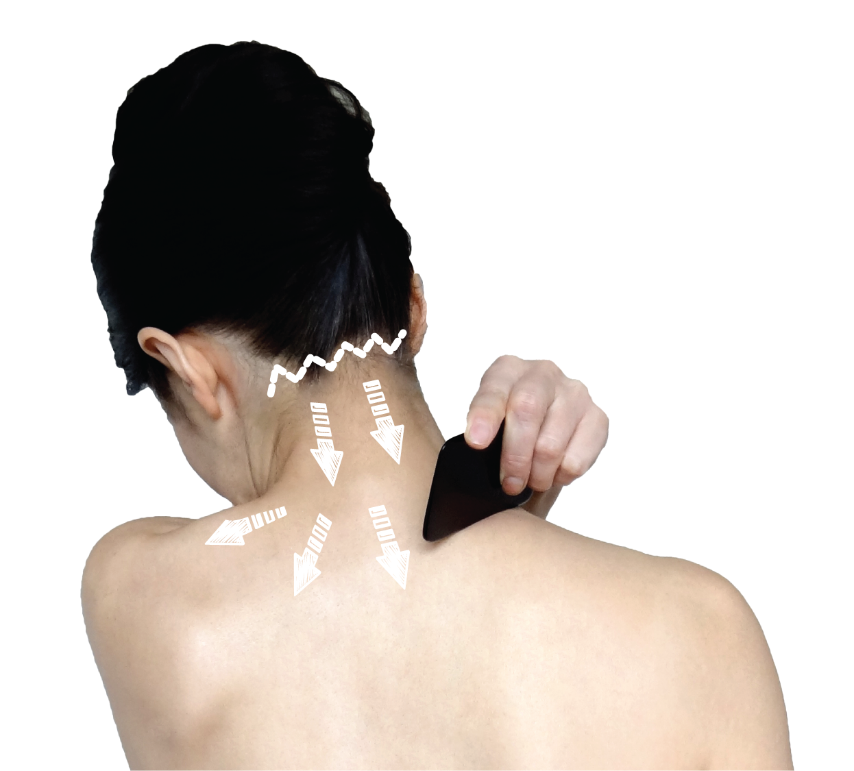 เมื่อเราใช้กัวซาสะกิดเส้นจนกล้ามเนื้อคลายตัวดีแล้ว ( สังเกตจากหน้าจะนิ่มขึ้น จุดสะดุดน้อยลง) จากนั้น